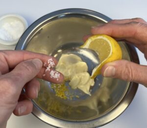 - Place the mayonnaise in a small bowl and stir in the zest.