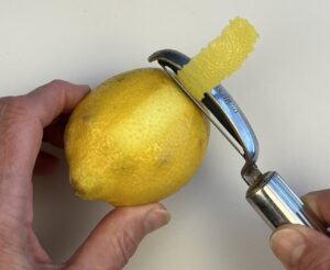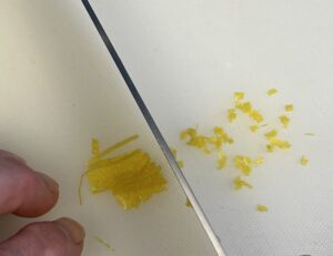- Use a swivel peeler to peel off a strip of lemon zest. (Don’t press too deeply into the bitter white pith). Mince the zest very fine.